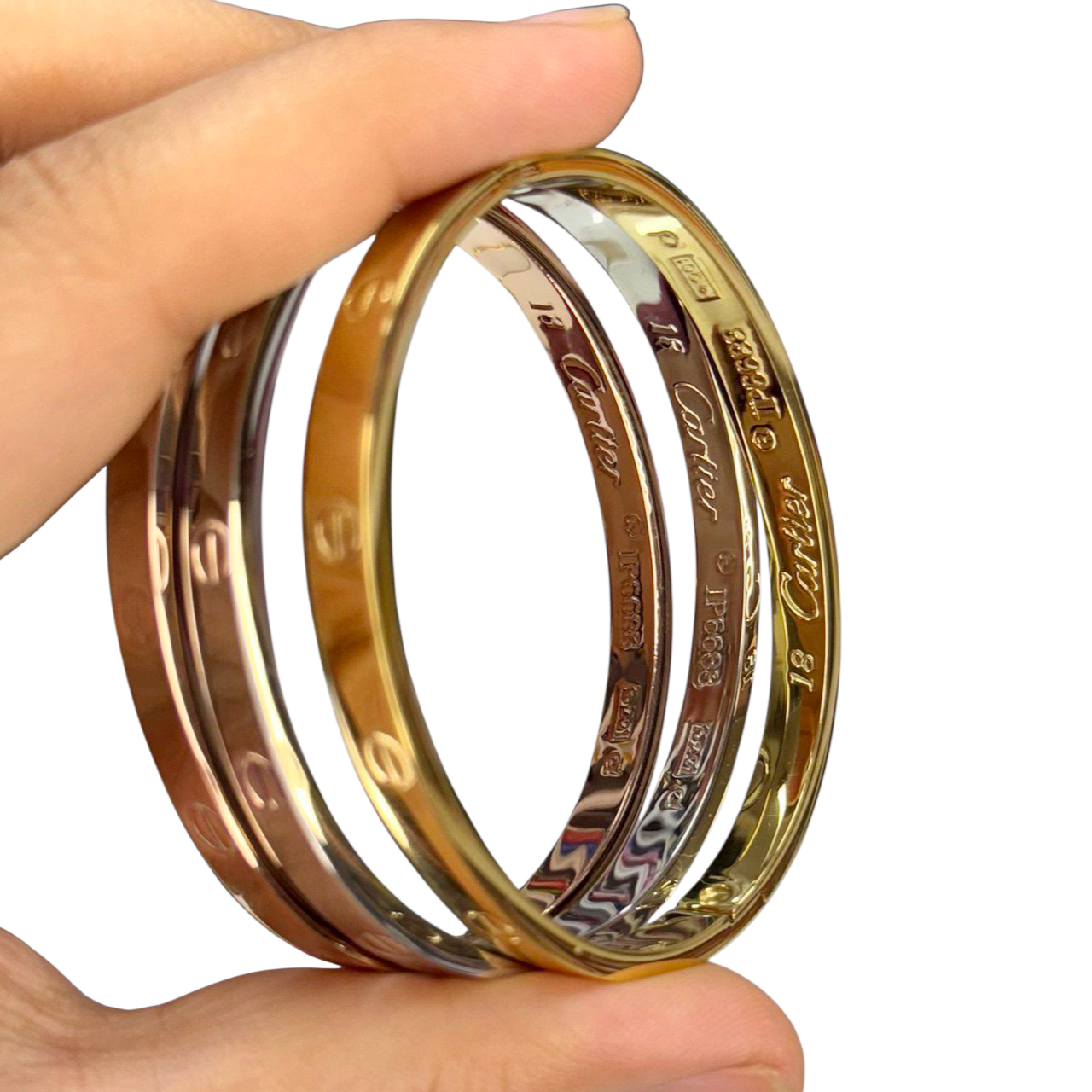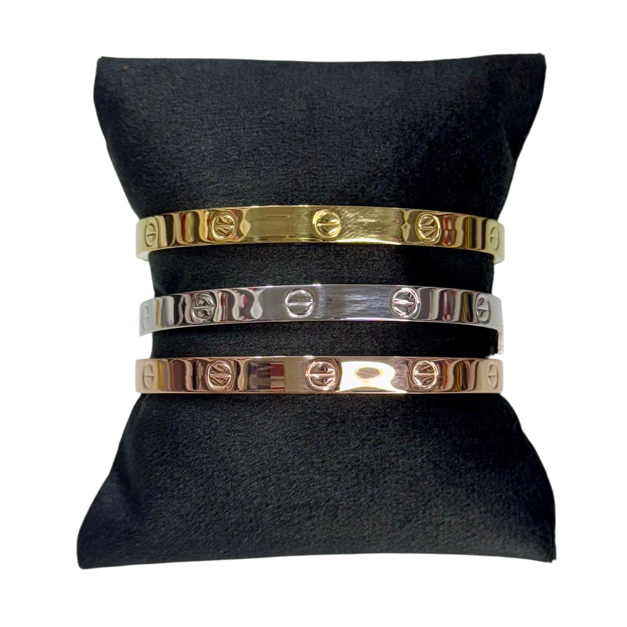 طقم فاخر مكون من ثلاث أساور بتصميم كارتير الكلاسيكي، مصنوع من الاستانلس ستيل عالي الجودة، مقاوم للصدأ والتغير.